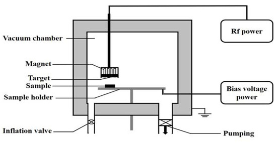 The MoS2–WS2 composite film was deposited by Ø80 mm hybrid target through a radio-frequency magnetron sputtering system. The structure of the sputtering device is shown in Figure 1.