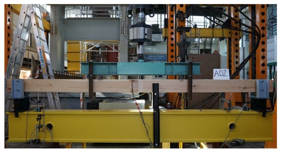 Additionally, during the course of the testing, the wood moisture was determined using a resistance hygrometer (FMW moisture meter) to take measurements in several locations on each tested beam. The moisture content of the elements was kept close to the required standard of 12% [,].