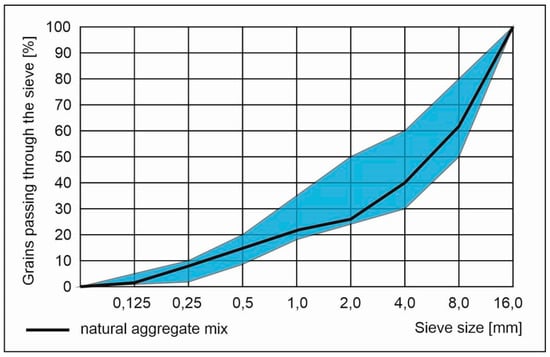 Natural aggregate both coarse and fine were used. Coarse aggregate that was used is natural gravel and fine one was a natural quartz sand. Aggregate mix was composed of three separate fractions 0–2, 2–8 and 8–16 mm. For the grading curve of the aggregate mix see Figure 1. Admixtures involved in research were: