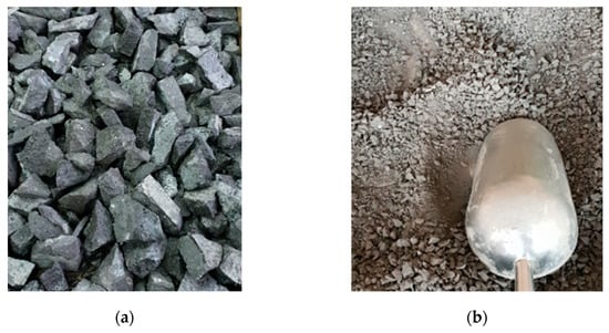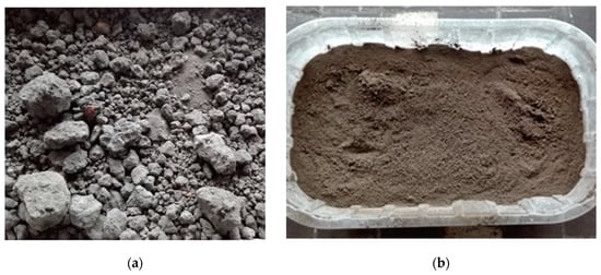 - Hammer crushing of aggregate to grain size <60 mm (see Figure 4a).