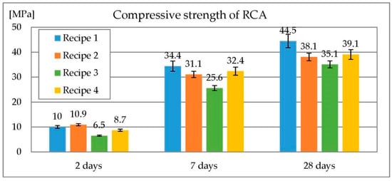 Compressive strength of preliminary recipes for RCA.