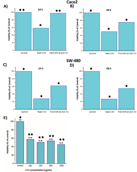 - Tawfik, E.; Ahamed, M.; Almalik, A.; Alfaqeeh, M.; Alshamsan, A. Prolonged exposure of colon cancer cells to 5-fluorouracil nanoparticles improves its anticancer activity. Saudi Pharm. J. 2017, 25, 206–213. [Google Scholar] [CrossRef]
