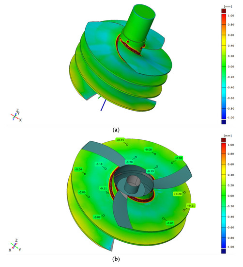 Machining accuracy measurement: (a) 3D model; (b) measurement results.