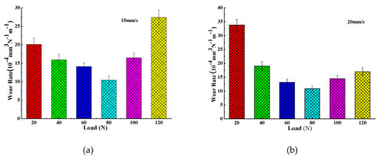 Wear rate histogram of sample oils under different loads. (a) sample oil #1; (b) sample oil #2.