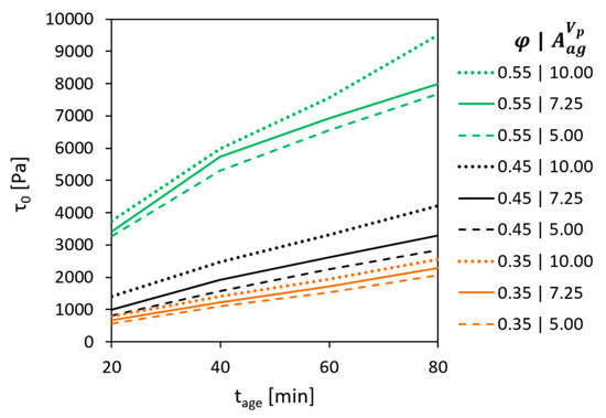 The practical importance of the experimental results obtained consists in the possibility of fine tuning the static rheological properties by varying the surface area of aggregates per unit volume of cement paste; see Figure 8.
