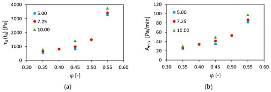The structural build-up rate was estimated using Roussel’s linear model [25] as it ensured a very good fit of the results obtained in this investigation; see Equation (5).