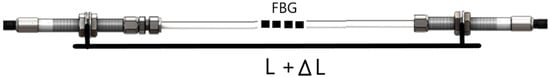 A system monitoring the deformation of the structure of power transmission towers was built. The system was based on fiber Bragg grating (FBG Sylex, Bratislava, Slovakia) strain sensors. The essence of the solution was to introduce FBG sensors in certain points of the tower structure as a kind of “nervous system”. In the case of supporting structures of power transmission lines, the appropriate places were those with the highest bending moment and the biggest compressive stresses. The places were pre-determined using numerical simulations and they were located at the tower base. The entire optical fiber system intended for the strain-and-stress state measurement was duly calibrated. Special grips had been designed earlier to make it possible to fix the strain sensor to the selected tower leg repeatedly. The FBG strain sensor is presented in Figure 1.