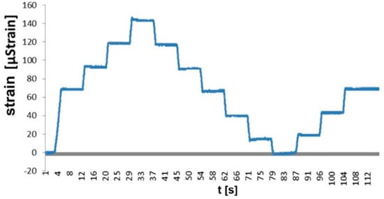- for the assumed constant 5 kN increment in force set by the strength-testing machine, strains corresponding thereto and established experimentally using the FBG SC-01 sensor were determined.