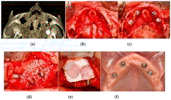 - Maloó, P.; de Araujo Nobre, M.; Lopes, I. A new approach to rehabilitate the severely atrophic maxilla using extramaxillary anchored implants in immediate function: A pilot study. J. Prosthet. Dent. 2008, 100, 354–366. [Google Scholar] [CrossRef]