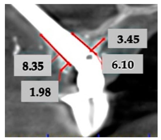 Bone gain was measured in the CBCT images at 6 months in two directions: through a perpendicular buccal and palatal lines to the implant axis (width) [24] and through a parallel buccal and palatal lines to the implant axis at level of coronal part of the implant (length) (Figure 4). Keratinized buccal mucosa width was measured at 3 months in cases with immediate loading and at the removal of second-surgery suture in cases without immediate loading (< or > 2 mm of keratinized buccal mucosa width).