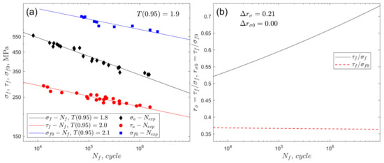 (a) Fatigue characteristics of the S355 steel for fully reversed bending , torsion , and the zero-pulsating bending (R = 0). (b) Fatigue strength ratios and .