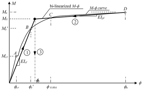 Bi-linearization of a typical moment–curvature response.