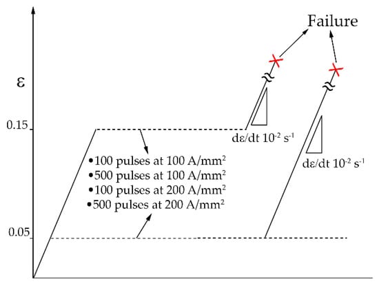 Subsequently specimens of the two categories were strained until fracture and compared to the reference test of each category. A schematic of the experimental procedure is showed in Figure 2.