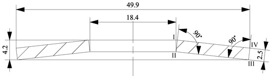 Additionally, an idealized geometry derived from the scanned data is presented in Figure 4. Edges I to IV are labelled for the reader’s orientation. A major difference between both geometries is that the surfaces between Edges I and IV, as well as II and III of the idealized geometry are straight, while those of the 3D-scanned disc spring are curved. This is also visible in Figure 6. Of course, the 3D-scanned geometry also was not perfectly symmetric.