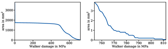 It describes the size of the surface area of the disc spring with a Walker damage equal to or greater than the given . A graphical representation [77] of the accumulated surface area is created.