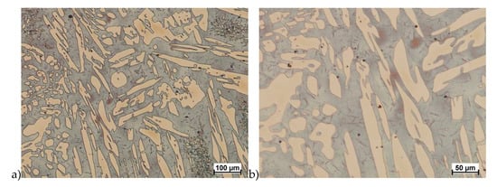 - Stradomski, G.; Stradomski, Z.; Denis-Brewczyńska, D. The change of solidification mechanizm of ferritic—Austenitic cast steel. J. Achiev. Mater. Manuf. Eng. 2014, 63, 58–64. [Google Scholar]