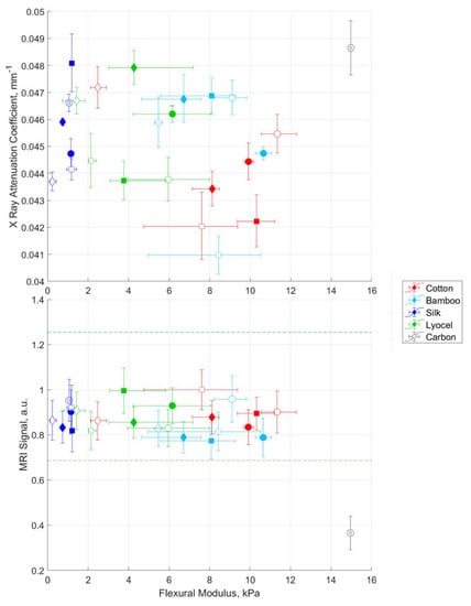 The following are available online at https://www.mdpi.com/1996-1944/13/7/1684/s1, Figure S1: Comparison of treated and untreated samples for compressional testing, Figure S2: MRI data collected at 3T plotted as a function of flexural modulus for each of the material samples, Figure S3: Comparison between the tensile force of the fabric and the resulting flexural modulus of the composites.
