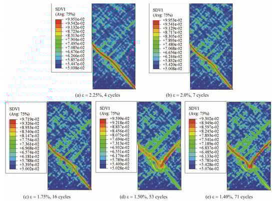 Damage evolution process with fatigue strain amplitude ε = 2.50%.