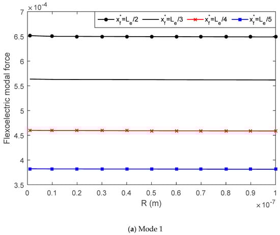 The effect of the probe radius on the flexoelectric modal force, (a) mode 1, (b) mode 3.
