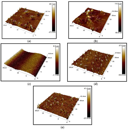 - Ji, X.; Hou, Y.; Zou, H.; Chen, B.; Jiang, Y. Study of Surface Microscopic Properties of Asphalt Based on Atomic Force Microscopy. Constr. Build. Mater. 2020, 242. [Google Scholar] [CrossRef]