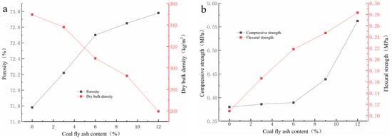 The trend of physical properties versus the addition of CFA: (a) porosity; (b) compressive strength.
