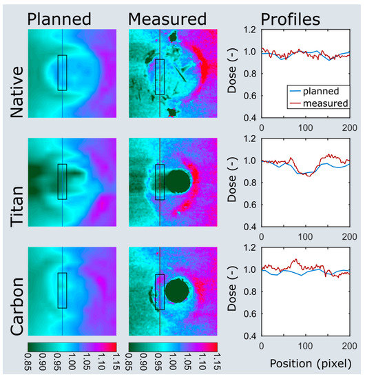 The following are available online at https://www.mdpi.com/1996-1944/13/7/1754/s1, Figure S1: Measured dose deviation with reference to the normalized dose in the periphery. Ti: Titanium; SD: Standard deviation.