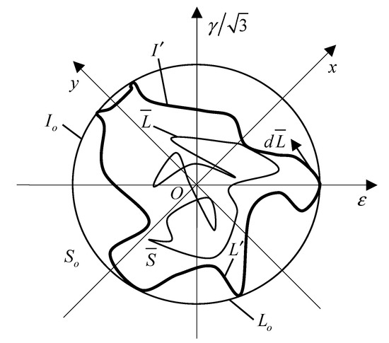 where is the moment of inertia of to the x-axis in Equation (18), which indicates the deviation of the point from the in-phase proportional loading path. In other words, the moment of inertia can account for the nonproportional contribution of the strain path. Any point in area surrounded by contributes to nonproportional additional hardening, and represents the distance from any point in area to the x-axis. Similar to , is the moment of inertia of to the x-axis. is the circle area with diameter of the maximum chord length. is used to express the distance from any point in area to the x-axis in Equation (19). Because an equivalent convex path may appear even under different random strain path loading, the contribution of the random strain path is taken into account by the parameter . is the area surrounded by the random strain path . and are the perimeter and the maximum strain range of , respectively.