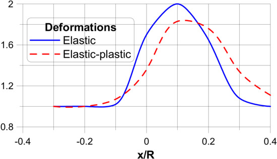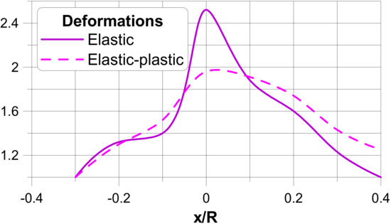 As it is demonstrated e.g., by Odegarda et al. [5], the definition of the yield surface is connected with the evaluation of lower number of experimental data than in the case of the hardening rule. Therefore, in the further discussion of non-linear problems (numerical), it is assumed that the hardening parameter is equal to zero. Thus, the non-linear problem considered herein can be called (in terms of theory of plasticity) as the elastic-perfectly plastic problem.