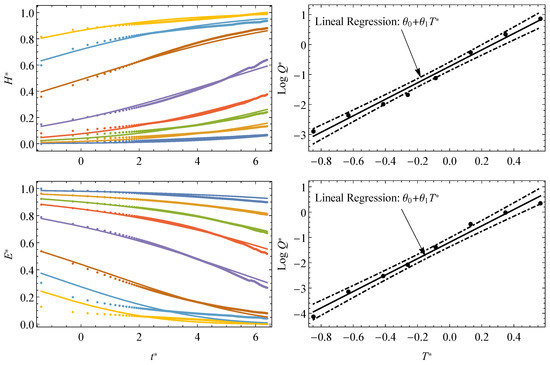 - Analytical definition of field. From a practical viewpoint, the analytical definition of the viscoelastic modulus, , as a cdf, represents the most important contribution of the proposed approach allowing the field to be fully defined by fitting the experimental short-term relaxation curves over the whole range of time (i.e., as master curves) and temperatures.