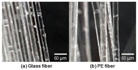 Pictures of (a) the glass fiber and (b) the polyethylene (PE) fiber.