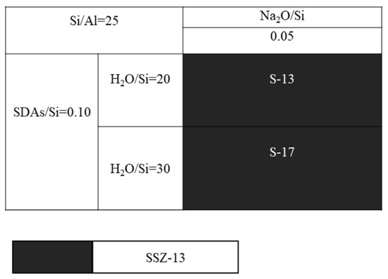 The crystallization of SSZ-13 with Si/Al = 8 as a function of the experimental variables in alkaline media. SDAs, structure-directing agents.