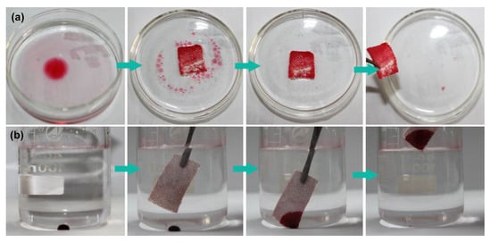 - Lv, N.; Wang, X.; Peng, S.; Luo, L.; Zhou, R. Superhydrophobic/superoleophilic cotton-oil absorbent: Preparation and its application in oil/water separation. RSC Adv. 2018, 8, 30257–30264. [Google Scholar] [CrossRef]