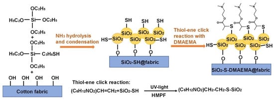 Schematic illustration of the formation of SiO2-S-DMAEMA on cotton fabric (Reproduced from [135], with kind permission of Elsevier).