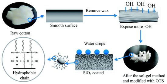 Schematic illustration of the modification cotton fiber (Reproduced from [139], under Creative Commons Attribution 3.0 International License).