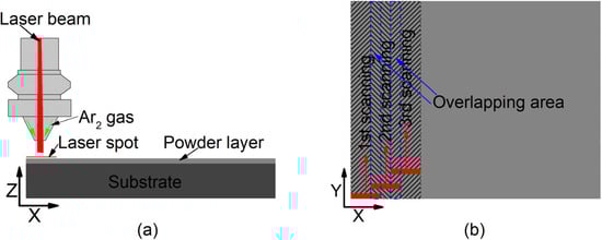Laser cladding synthesis: (a) X–Z direction view; (b) X–Y direction view.