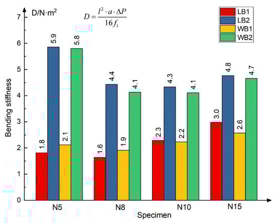 According to the test method for flexural properties of sandwich constructions (GB/T 1456-2005) [36], the shear stress and bending stiffness of each specimen are calculated.