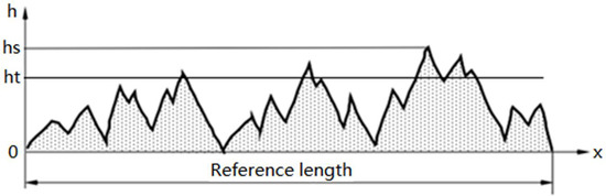 The macrotexture morphology of the original coarse aggregate surface is irregularly distributed like mountain peaks, as shown in Figure 1. The vertical coordinate h in the figure represents the macrotexture height of the aggregate; the x-coordinate is the length along the aggregate surface, where hs is the initial maximum macrotexture height and ht is the macrotexture height of the aggregate surface at time t.