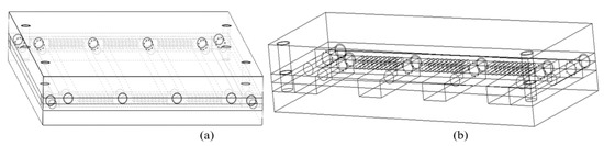 The fabricated mold for the test pieces showing (a) The entire mold assemblage (b) The fiber holes within the mold.