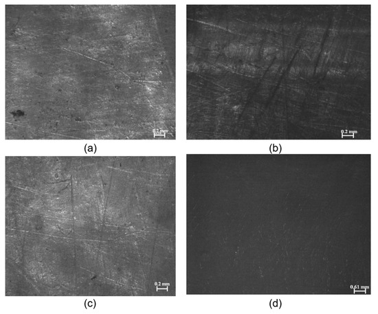 Consequently, the surface morphology of the fabricated samples was microscopically viewed to investigate the effects of the reinforcement fibers. The observed micrographs of the PCU matrices and their reinforced composites from the light microscope are presented in Figure 3a–d. The photomicrographs showed that the surface of the reinforced matrices appeared relatively smoother and cleaner with minimal surface imperfections, compared to the as-molded polymeric matrices.