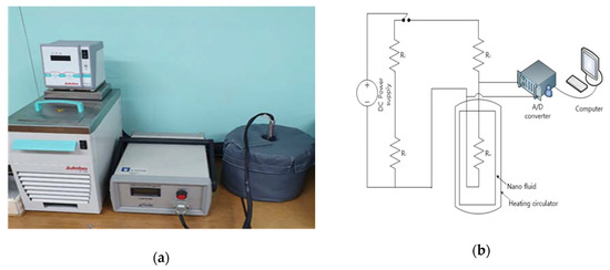 - Peñas, J.R.V.; Ortiz de Zarate, J.M.; Khayet, M. Measurement of the thermal conductivity of nanofluids by the multicurrent hot-wire method. J. Appl. Phys. 2008, 104, 044314. [Google Scholar] [CrossRef]