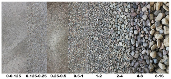 The natural aggregate of post-glacial origin used as a raw material for the creation of the third kind of aggregate used in this research is shown in Figure 5. This aggregate was thoroughly described in numerous previous publications [9,13,14].