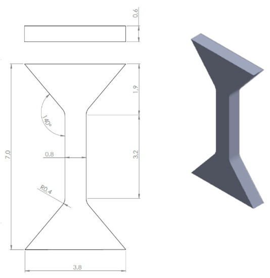 Obtaining an AZ31/AA2519/Ti6Al4V laminate requires the use of an additional AA1050 aluminum layer between AZ31/AA2519 and AA2519/Ti6Al4V plates. The following plates were used to make the laminate: magnesium alloy AZ31 (5 mm thick), aluminum alloy AA2519 cladded on both sides with AA1050 (4 mm thick in total) and titanium alloy Ti6Al4V (5 mm thick). The chemical composition of the components is shown in Table 1. The chemical composition of the materials was established by the materials supplier. The multilayer material was investigated in the state after the explosive welding and after applying the forming process—hot rolling, performed in three different temperatures: 300 °C, 350 °C and 400 °C, with a total relative strain of 30%. For laboratory testing, a laboratory rolling mill with a working roll diameter of 300 mm was used. The rolling speed was 0.2 m/s. The investigation of the composite properties involves a microhardness distribution analysis, performed with load of 0.98 N was applied for 10 s, and mini-specimen tensile testing conducted on Instron 8802 MTL universal testing machine (Instron, Warsaw, Poland). Space between microhardness test indentations was equal to 150 µm. The scheme of the used mini-specimen is presented in Figure 2. The tensile strength was measured separately for Ti6Al4V/AA1050/AA2519 and AZ31/AA1050/AA2519 joints. For obtaining the tensile strength values, 3 mini-samples of Ti6Al4V/AA1050/AA2519 material for each state (as-welded, hot-rolled 300 °C, 350 °C, 400 °C) were tested (equal to 12 samples). The same case was for AZ31/AA1050/AA2519 mini-samples (equal to 12 samples as well). The samples were cut from the central part of the plate in order to avoid the delaminated or weakened areas of the joint that are characteristic of the edges and corners of the plates being joined. In addition, the test plates were cut at a certain angle to each other, as the impact wave generated by the explosion propagated radially through the material. Therefore, for a representative microstructure, the test plates should be cut in a direction parallel to the direction of the impact wave propagation.