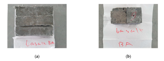 Basalt-fiber-enriched bottom ash composites: (a) flexural samples; (b) cubic samples.