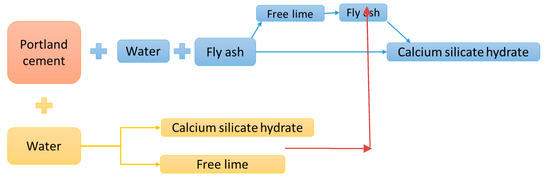 Reaction of fly ash (FA) in cement [70].