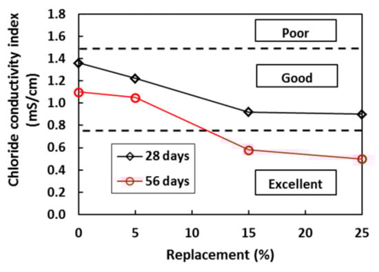Effect of SBA on the chloride conductivity index of concrete [82].