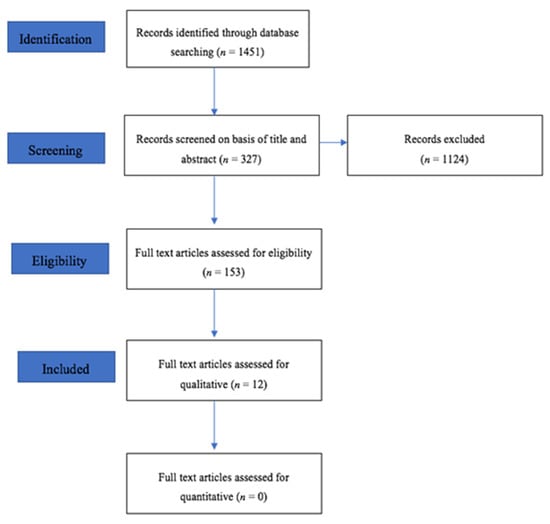 After the exclusion of duplicated articles, the electronic search identified 1451 articles from EMBASE, PubMed/ Medline, Scopus, and Web of Sciences. However, 327 articles were initially selected based on titles and abstracts, whereby 153 articles appeared as full text. The total number of papers, which met the inclusion criteria for the review, was 12. The flow diagram (Figure 1) depicts the details of the search strategy and Table 2 lists out surface treatment and bond strength analysis of FRC posts.