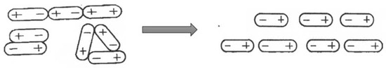 MW does not mean that it has a magnetic force that can attract things. However, it relies on the magnetic field that breaks the hydrogen bonds between the water bodies that reduces the water molecular conglomerates and assists in the spread of water molecules, as shown in Figure 1 [3,10]. The magnetic field reduces the surface tension of water, which can be measured by a device called a tensiometer, and it also changes the structural composition, the viscosity, and the electrical conductivity of the water [11,12]. This, in turn, leads to a change in the path of the water molecules to be much better in the bonding between the water and any additives that can interact [13]. Consequently, this leads to a faster and more complete reaction with the cement granules when added to the water [14].
