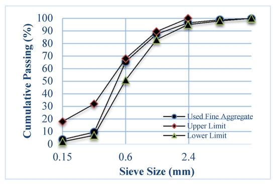 Sand: Siliceous natural sand complying with ASTM C33 [30] was used. The sand was obtained from a local warehouse. The physical properties of the fine aggregate are given in Table 3, while the particle size distribution is given in Figure 2.