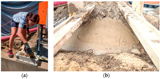 (a) Sampling of fresh grout for determination of the main parameters; (b) excavation filled with grout.