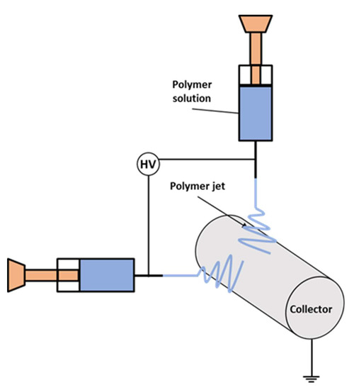 - Stachewicz, U.; Modaresifar, F.; Bailey, R.J.; Peijs, T.; Barber, A.H. Manufacture of Void-Free Electrospun Polymer Nanofiber Composites with Optimized Mechanical Properties. ACS Appl. Mater. Interfaces 2012, 4, 2577–2582. [Google Scholar] [CrossRef]